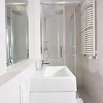 Nogle værelser vender mod byen. Et badekar og en bruser opbevares på badeværelset.